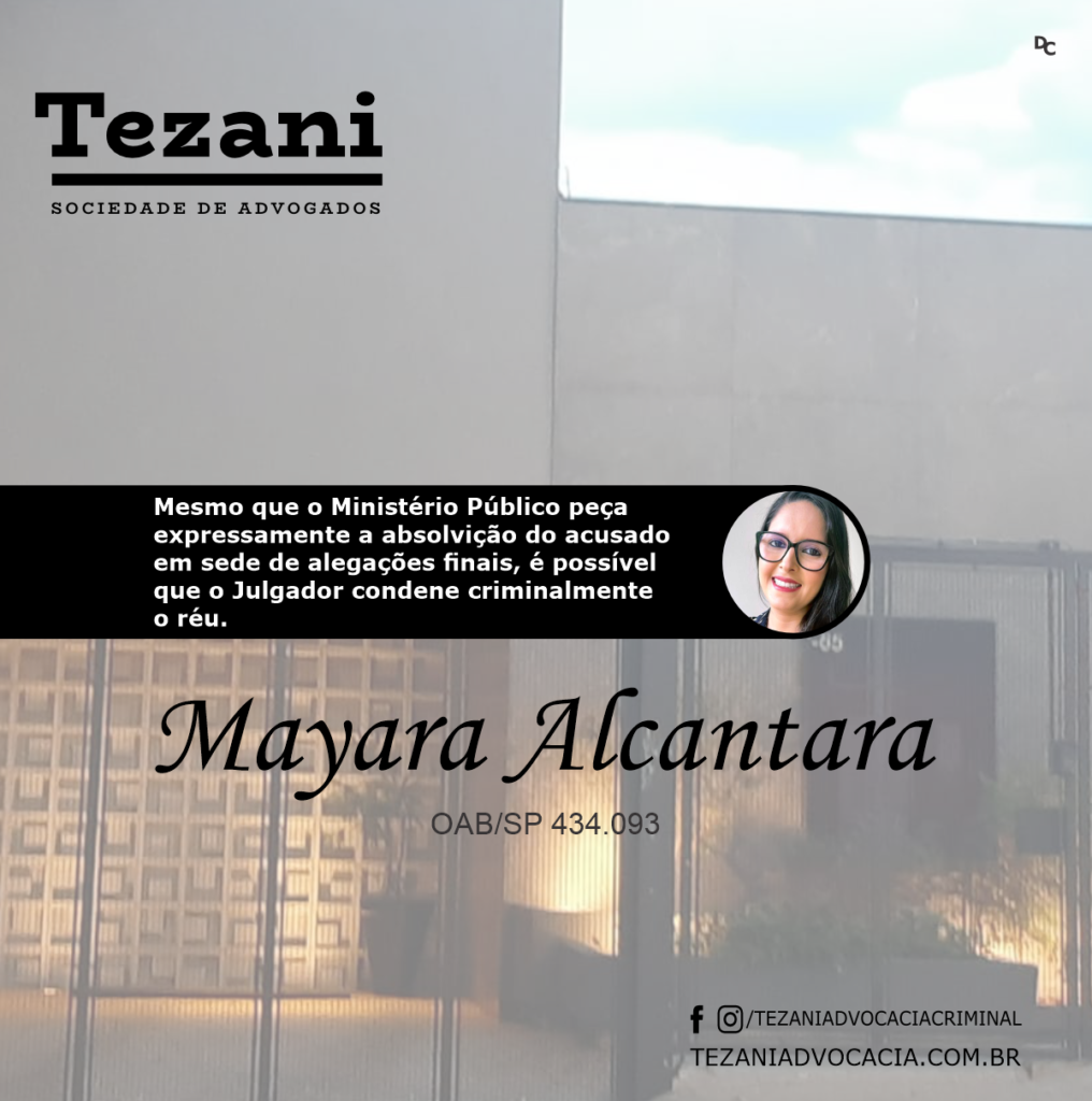 Mesmo que o Ministério Público peça expressamente a absolvição do acusado em sede de alegações finais, é possível que o Julgador condene criminalmente o réu.